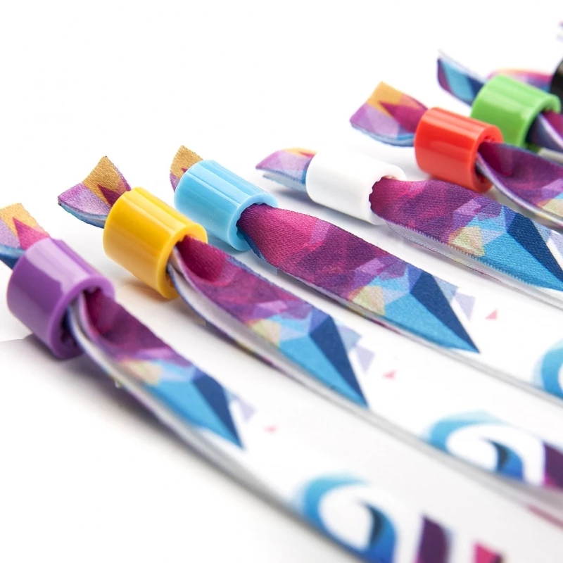 State organizzando una fiera, una conferenza, un evento di formazione o qualsiasi altro tipo di evento con un gran numero di partecipanti? Avrete sicuramente bisogno di un braccialetto per eventi, da consegnare a ogni persona che si registra. I braccialetti offerti nel nostro negozio sono realizzati in nastro di poliestere estremamente resistente che, grazie alla stampa a sublimazione, può essere stampato con qualsiasi grafica, logo o scritta a colori. Il braccialetto per eventi è dotato di un elemento di bloccaggio in plastica che consente di adattarne le dimensioni con precisione al polso di chi lo indossa. Inoltre, impedisce al braccialetto di scivolare via in modo indesiderato.