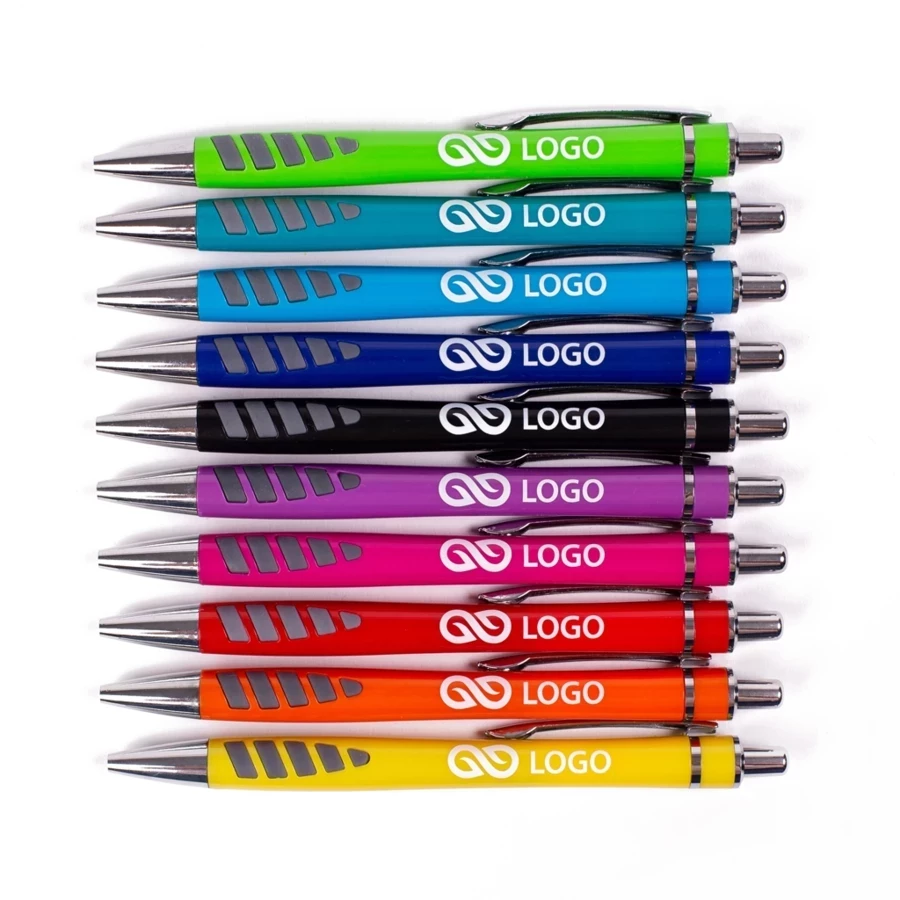 Chi desidera che la penna pubblicitaria per le proprie attività di marketing sia soprattutto comoda da usare, sarà interessato al modello Mercury. Questa penna a sfera promozionale con stampa ha una forma studiata, con elementi posizionati appena sopra la punta per una presa più sicura e confortevole durante la scrittura. Le penne a sfera in plastica Mercury sono realizzate in resistente plastica ABS e sono disponibili in diversi e divertenti colori. Le parti aggiuntive, come la punta, la clip e il pulsante di accensione, sono realizzate con elementi in argento. Il design complessivo è accattivante in termini di colore e lavorazione. L'involucro della penna promozionale Mercury può essere stampato con qualsiasi logo o scritta a un colore mediante tampografia.